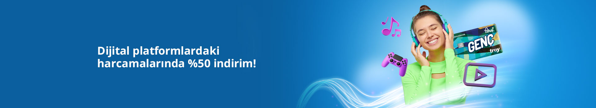 Paraf Gençİz kart ile Netflix, Disney Plus, Spotify, Youtube Premium, Amazon Prime, Steam, Xbox Game Pass ve diğer dijital platformlarda %50 indirim kazanılacaktır.