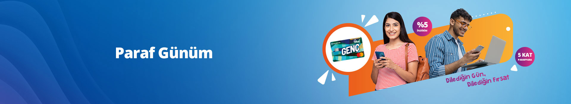 %5 indirim, 5 kat ParafPara. Ayda bir bu fırsatlardan birini ve kullanmak istediğin günü seçmek senden. Bunu kampanya yapmak Para Gençİz'den !